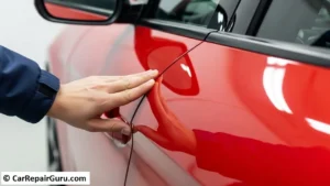 5. Water Leaks: Finding damp carpets or seeing water drip marks around the door frame after it rains is a major red flag. This means the weatherstripping isn’t creating a watertight seal, a direct result of a water leaking car door caused by misalignment.