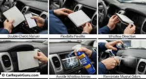 • Solution (Clean the System): If your old filter was exceptionally moldy for a long time, the odor may have already seeped into the HVAC’s evaporator core. A new filter will help, but to fully eliminate the smell, you may need an A/C system cleaner. This is an aerosol spray that you inject into the system to kill any lingering mold and mildew.
