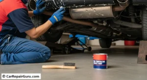 For better muffler maintenance, if you spot minor surface rust that hasn’t eaten through the metal, you can take action. Use a wire brush to remove the loose rust, then apply a coat of high-temperature exhaust paint to seal the metal and stop the corrosion in its tracks.