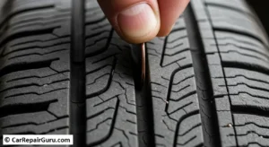 - Take a penny and place it with Lincoln’s head upside down in one of your tire’s main tread grooves.